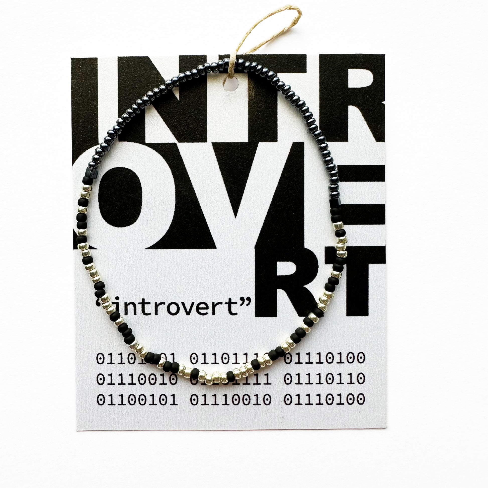 "introvert" is coded into this bracelet using colors to represent binary code - the computer language of zeros and ones.