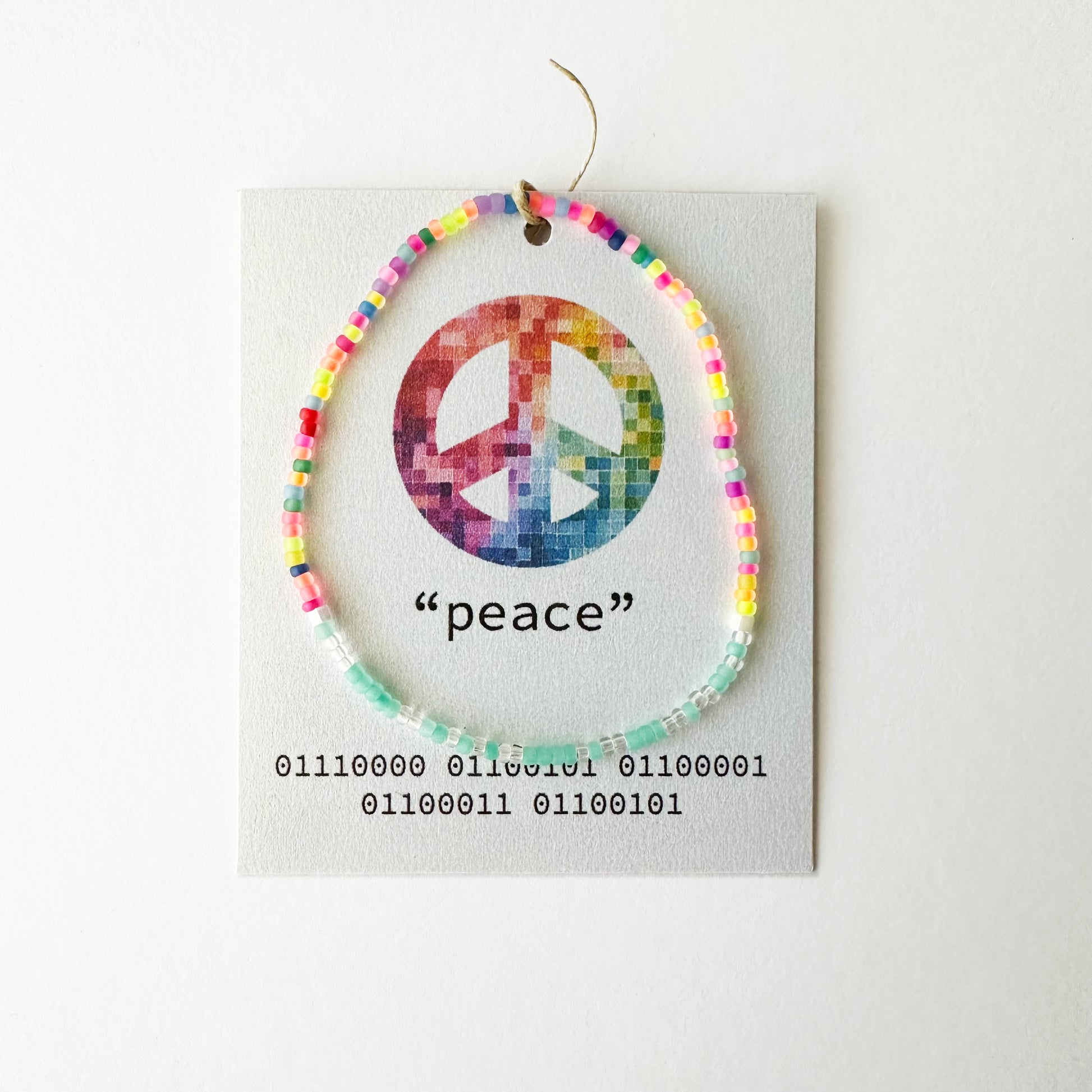 "peace" is coded into this bracelet using colors to represent binary code - the computer language of zeros and ones.