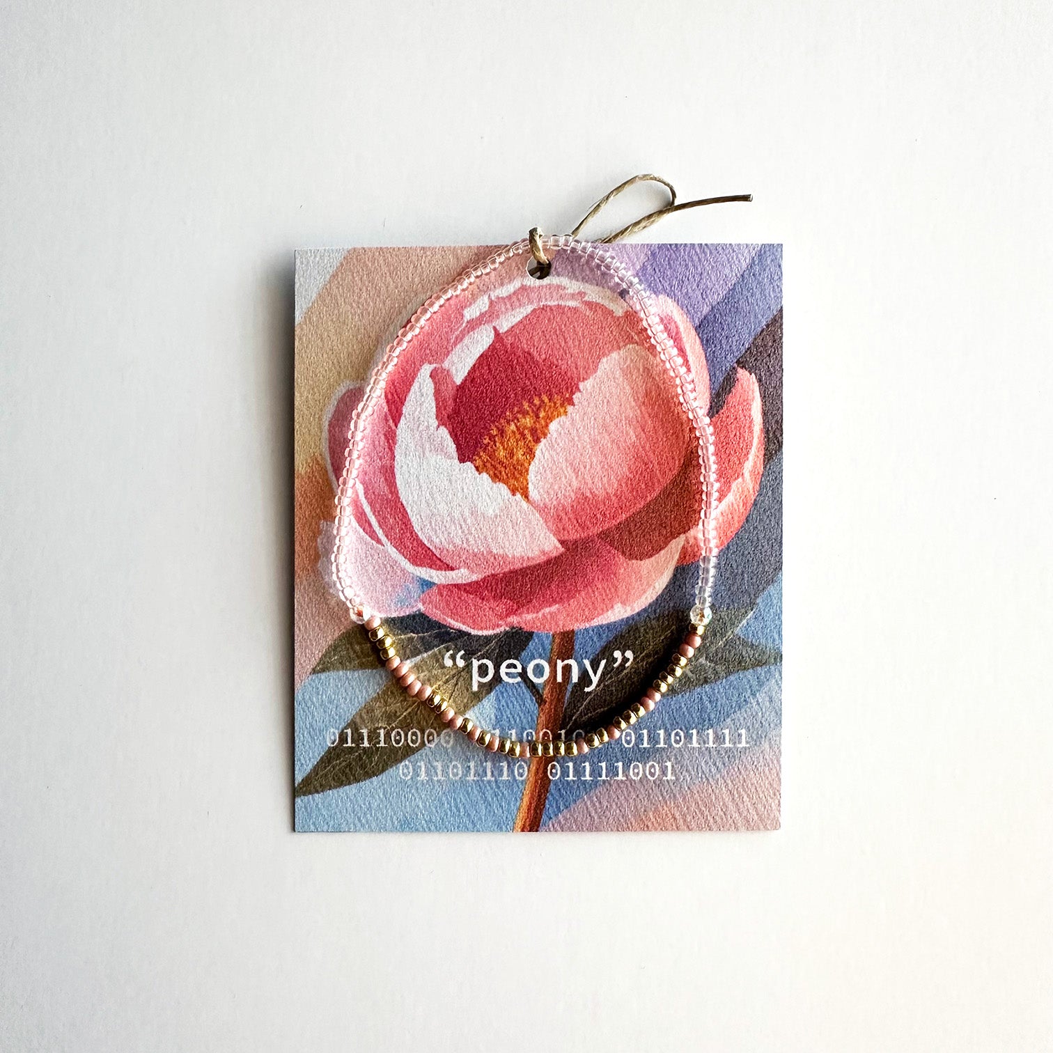 "peony" is coded into this bracelet using colors to represent binary code - the computer language of zeros and ones.