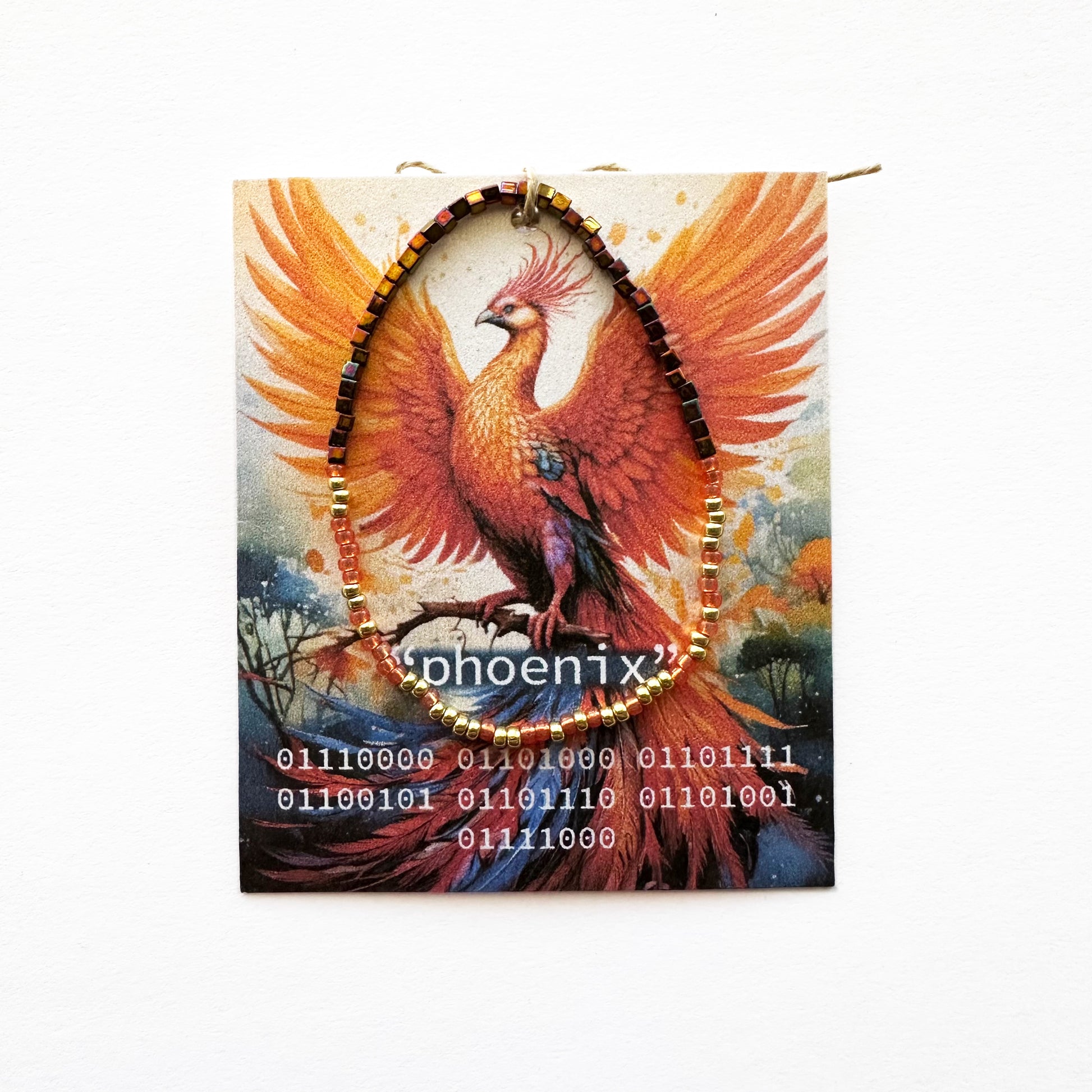 "phoenix" is coded into this bracelet using colors to represent binary code - the computer language of zeros and ones.