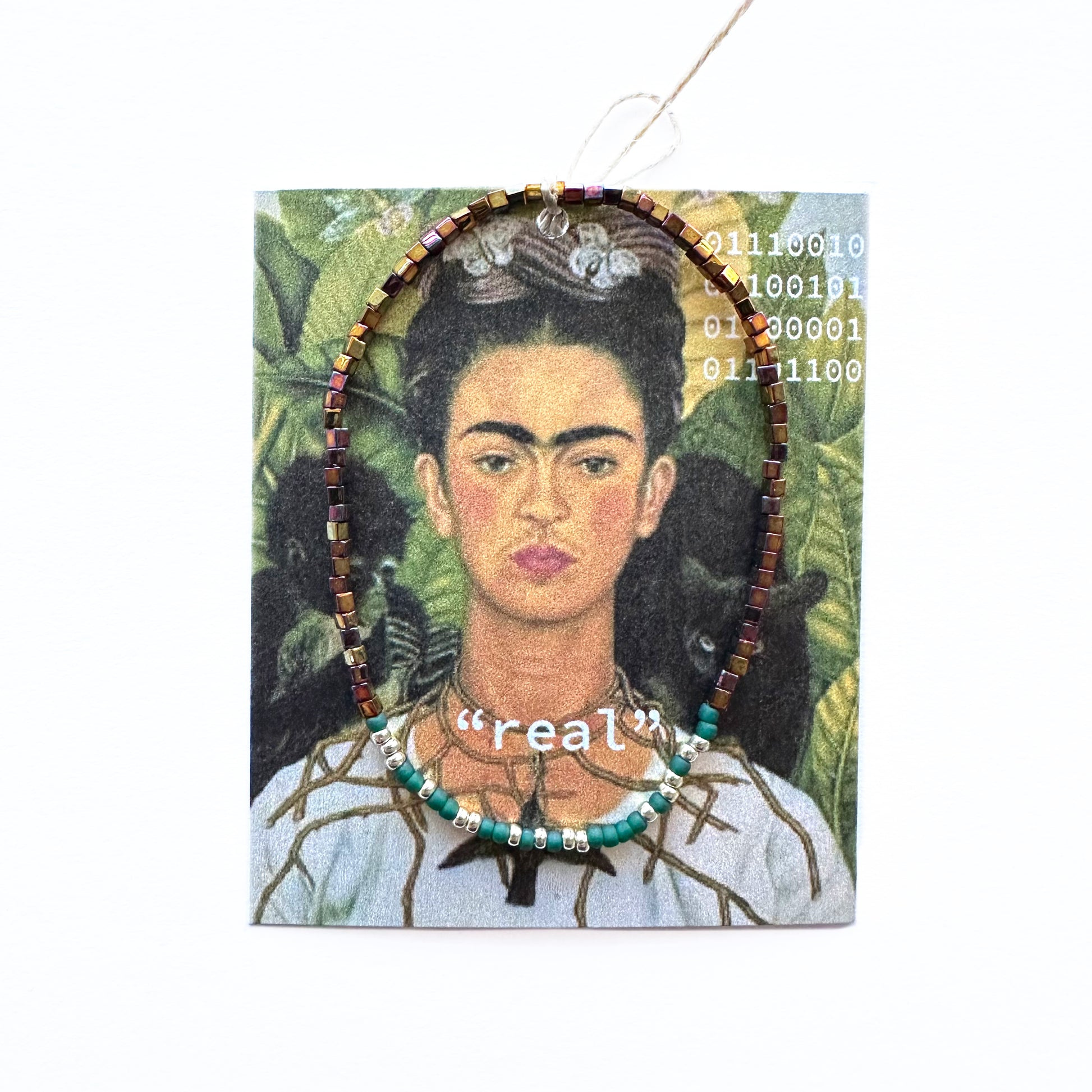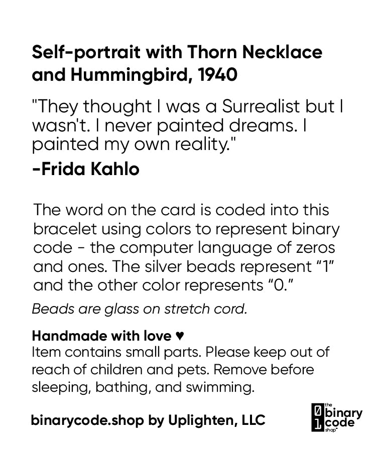 This bracelet celebrates Frida Kahlo, designed to honor her famous work - Self-portrait with Thorn Necklace and Hummingbird, 1940.