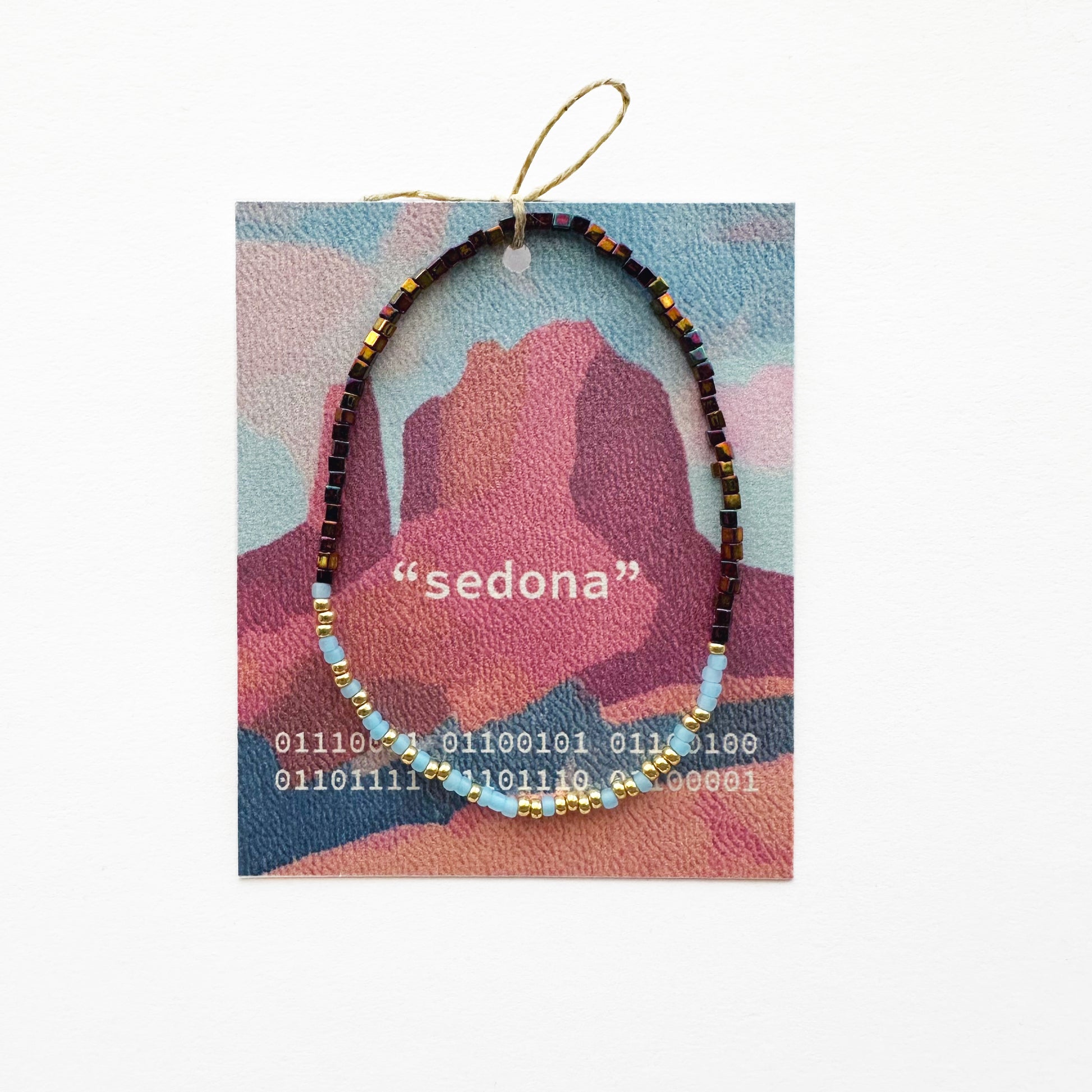 "sedona" is coded into this bracelet using colors to represent binary code - the computer language of zeros and ones.
