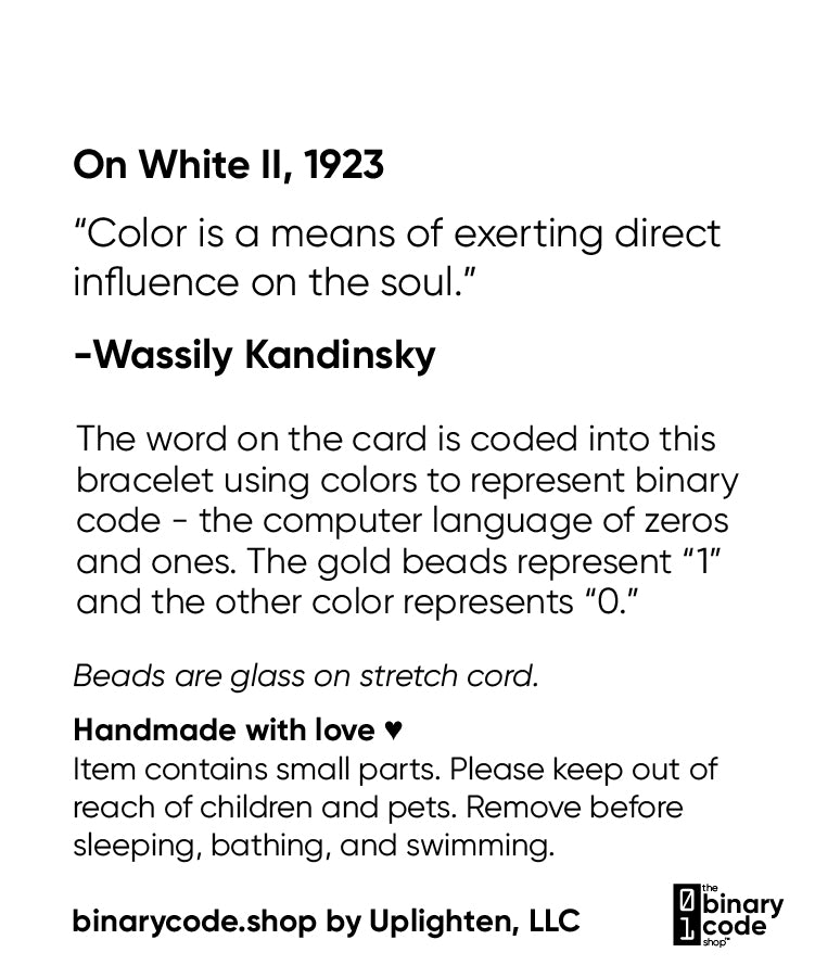 This bracelet celebrates Wassily Kandinsky with On White II on the front and a quote from Kandinsky himself on the back!