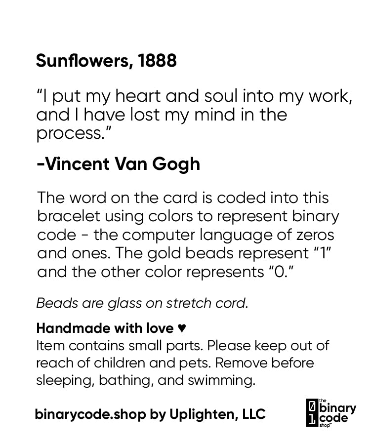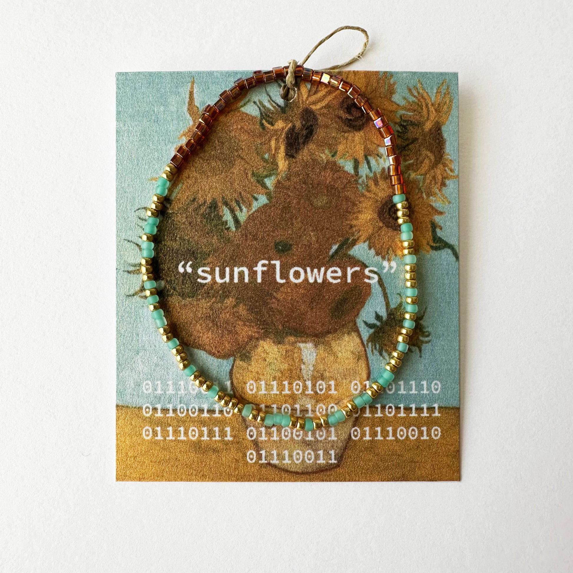 This bracelet celebrates Vincent Van Gogh, designed to honor his famous work - Sunflowers.