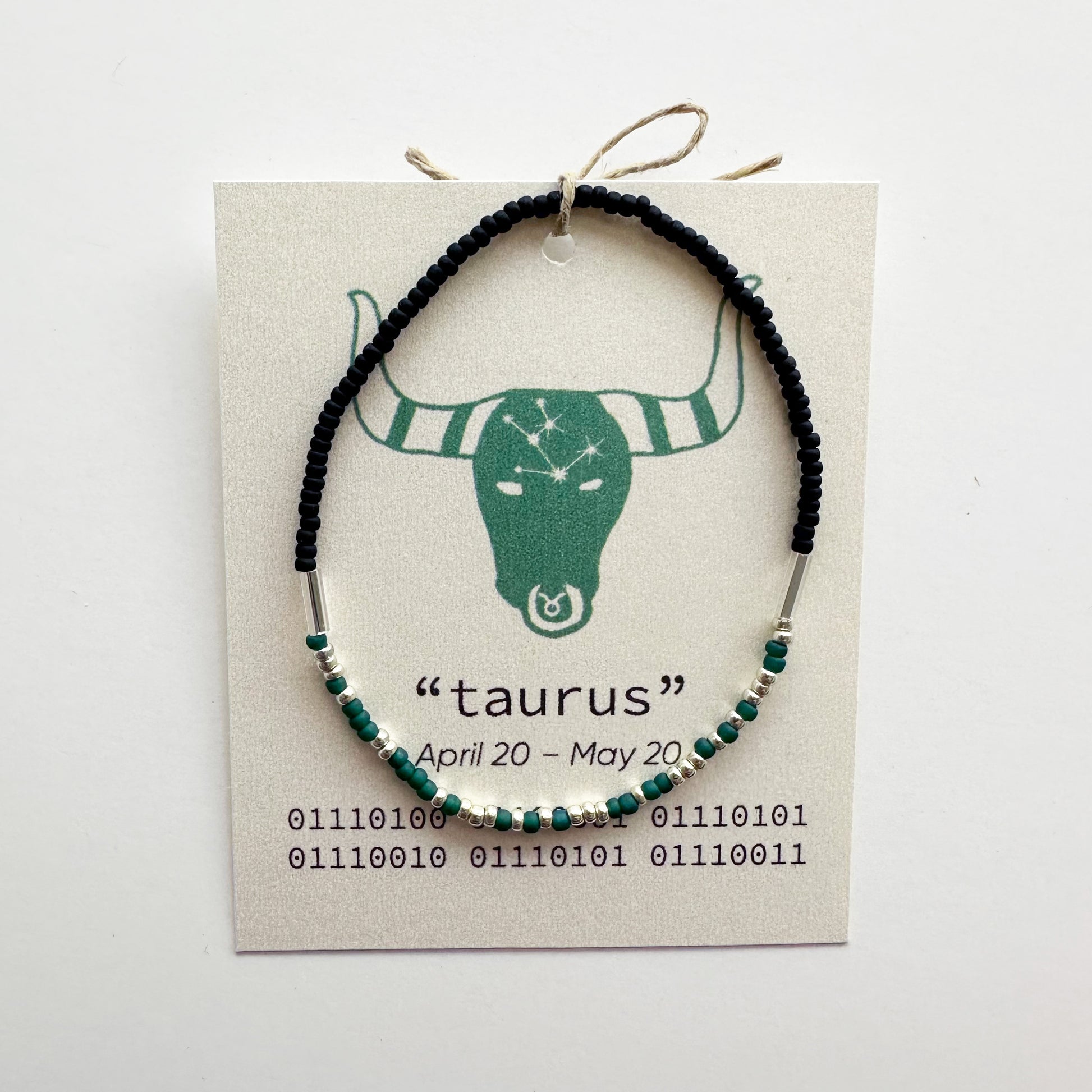 "taurus" is coded into this bracelet using colors to represent binary code - the computer language of zeros and ones.