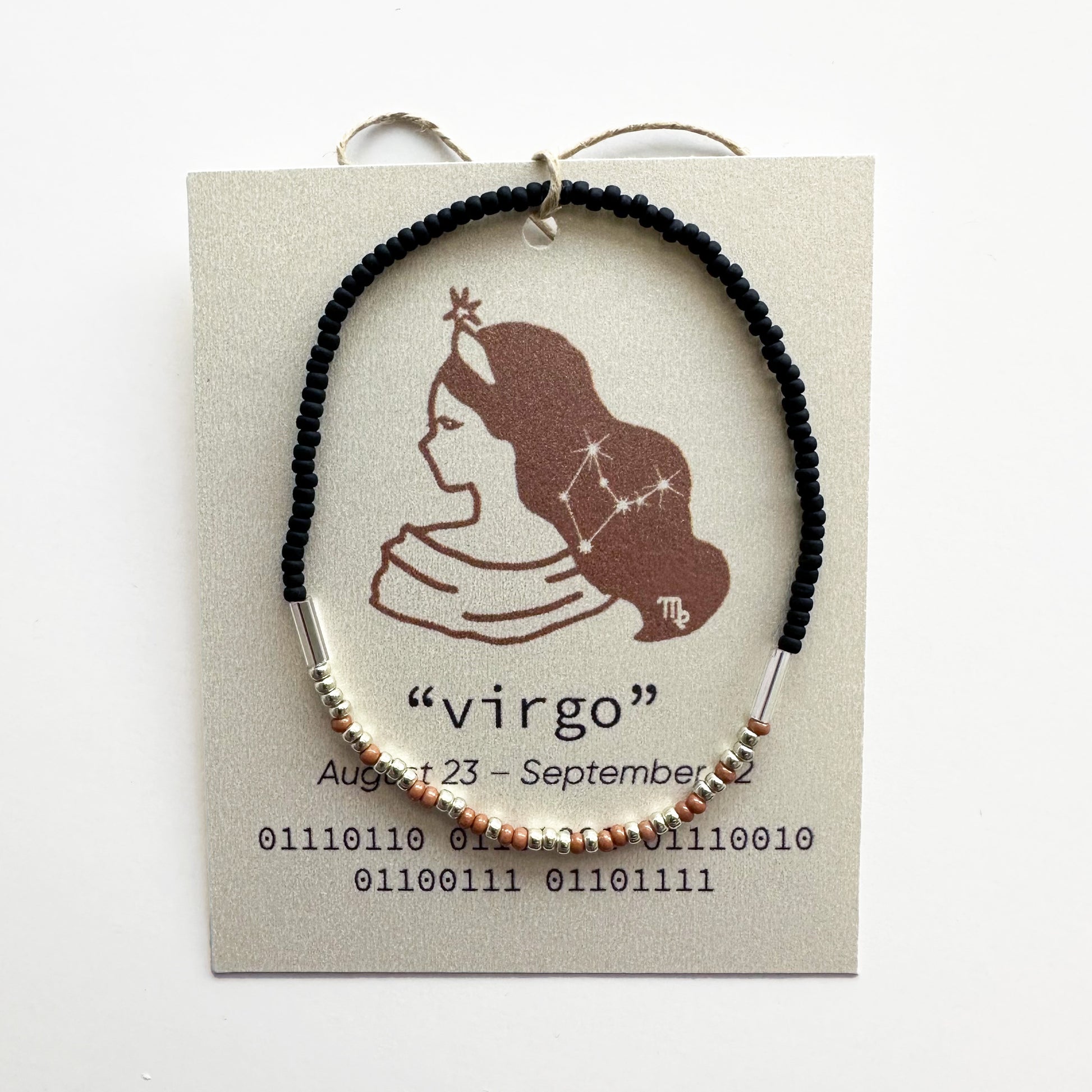 "virgo" is coded into this bracelet using colors to represent binary code - the computer language of zeros and ones.