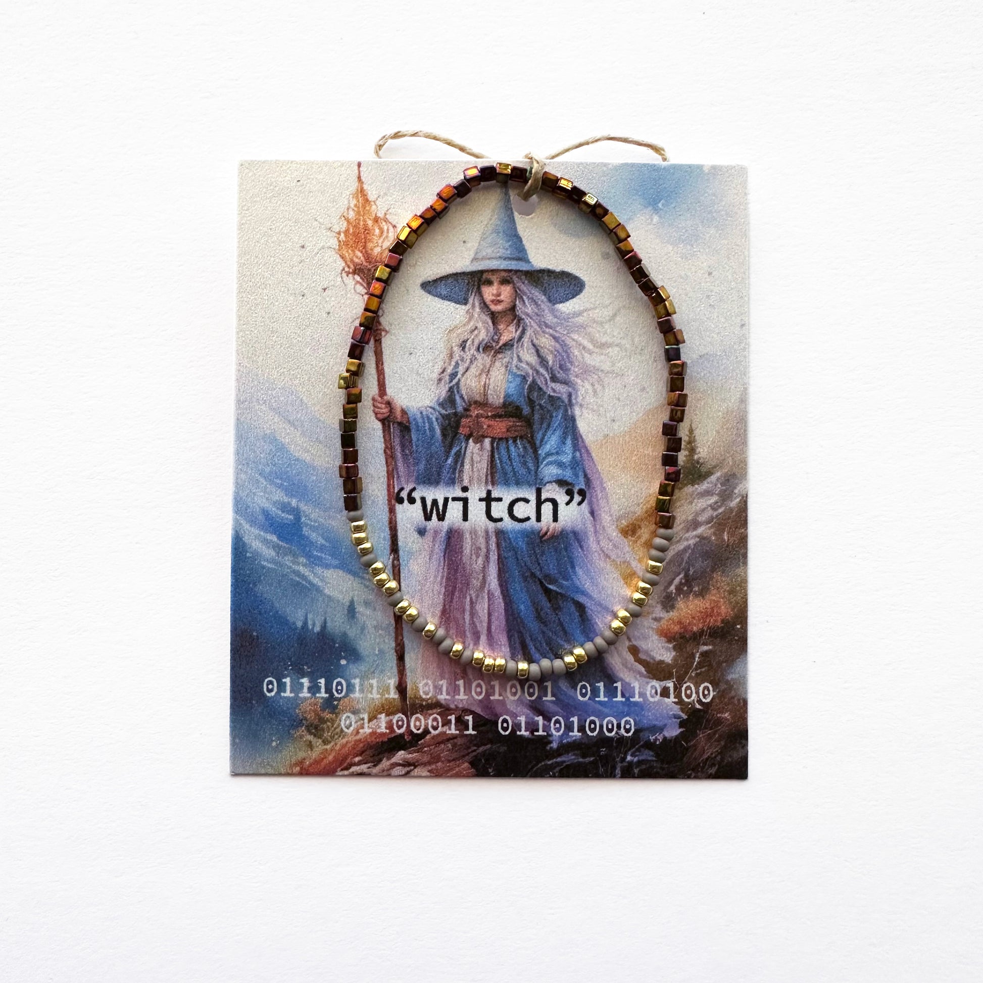 "witch" is coded into this bracelet using colors to represent binary code - the computer language of zeros and ones.