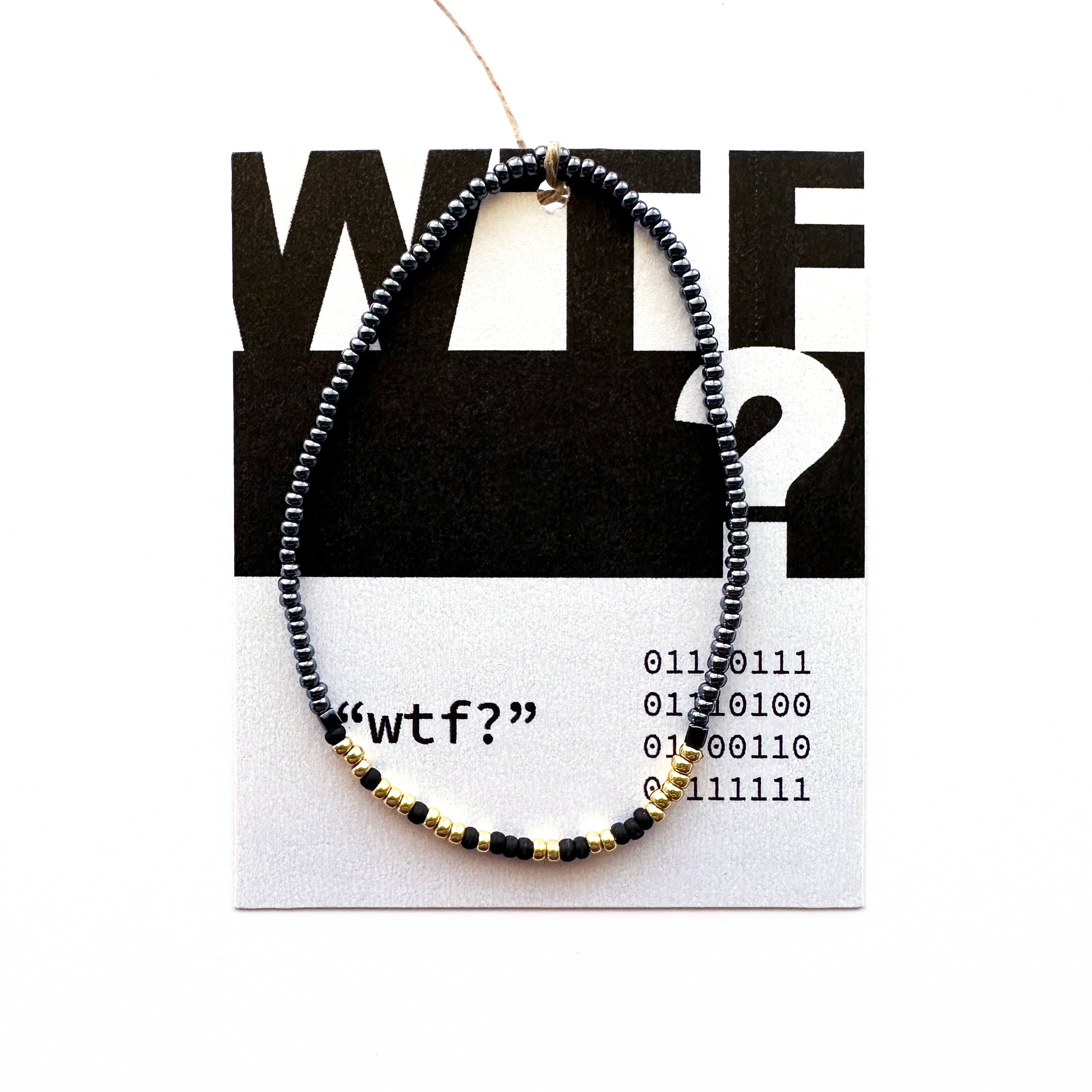 "wtf?" is coded into this bracelet using colors to represent binary code - the computer language of zeros and ones.